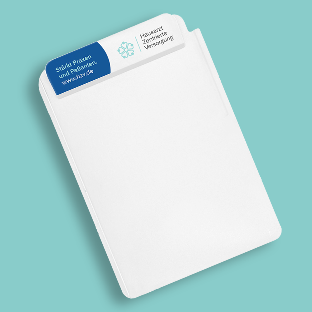 Zeigen Sie auch nach außen, dass in Ihrer Praxis die HZV gelebt wird und motivieren Sie Patientinnen und Patienten zur Teilnahme! Wir unterstützen Sie dabei mit Flyern, Postern und mehr. Neu: HZV-Flyer in mehreren Sprachen. Sie finden die Kommunikations-Materialien in unserem Bestellservice - entweder als Download oder zum kostenlosen Anfordern. Schnell sein lohnt sich: Den ersten 50 Bestellungen für die neuen HZV-Flyer legen wir ein Klemmbrett bei.