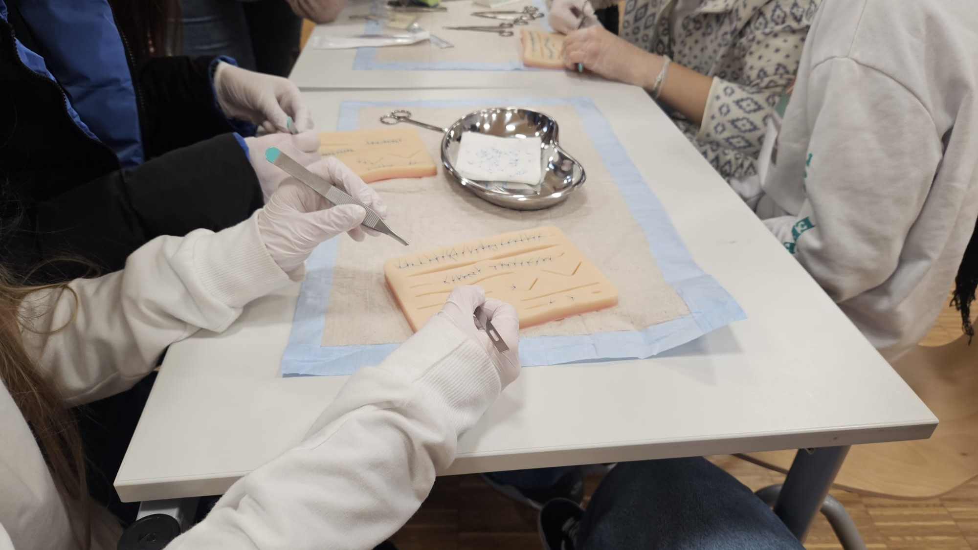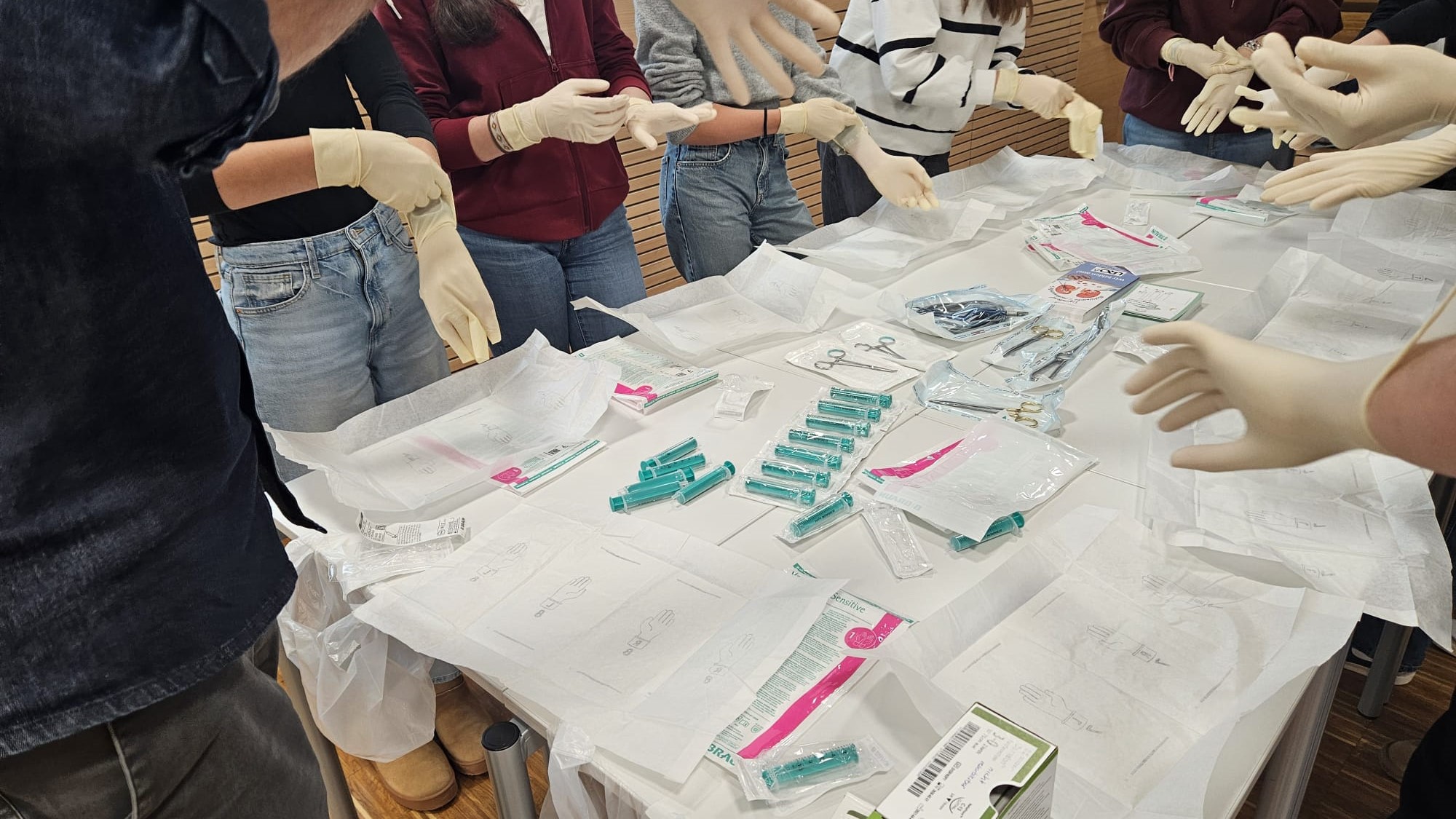 Neben dem sterilen Anziehen und Hände desinfizieren ging es um Prick-Tests zur Allergiediagnostik, Blutentnahme und das Anschließen einer Infusion, Fäden ziehenund Impfen, Blutdruck messen und Urindiagnostik im Rahmen eines Schwangerschaftstests.