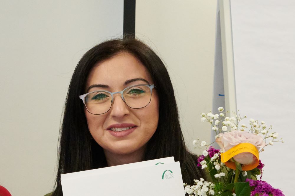 Zu diesem Spitzenergebnis hat Christina Bozoidou nicht unmaßgeblich beigetragen. 2010 ist sie aus Griechenland nach Deutschland gekommen und hatte, nachdem ihre drei Kinder aus dem Gröbsten heraus waren, eine berufliche Neurorientierung gesucht. Ins Hotelfach, wo sie eine Ausbildung absolviert hatte, wollte sie nicht mehr. „Meine Cousine hat mich auf die Qualifizierung zur „Kaufmännischen Assistenz in Hausarztpraxen“ aufmerksam gemacht“, berichtet die 37jährige. Als sie hörte, dass noch Plätze frei sind, bewarb sie sich einfach und legte los.Es sei schon ein Sprung ins kalte Wasser gewesen. Wie viele Berufseinsteiger oder Quereinsteiger sah auch Christina Bozoidou sich vor einer großen Herausforderung und war unsicher, ob sie es schaffen würde. Sorge bereitete ihr vor allem die Sprache. Zwar spricht sie inzwischen nahezu akzentfrei und fließend deutsch. „Aber da waren natürlich viele neue Fachbegriffe“, sagt sie. Außerdem musste sie die Qualifizierung mit ihrem Familienleben unter einen Hut bringen. Da die Kurse vormittags bis 14 Uhr stattfanden, ließ sich das mit der Kinderbetreuung zwar gut vereinbaren. „Doch Schule, Haushalt und Kinder mit Hausaufgaben miteinander zu vereinen war schon anstrengend. Ich habe gelernt, wenn meine Kinder im Bett waren. Vor der Prüfung habe ich 5/6 Stunden täglich gelernt“, berichtet sie.