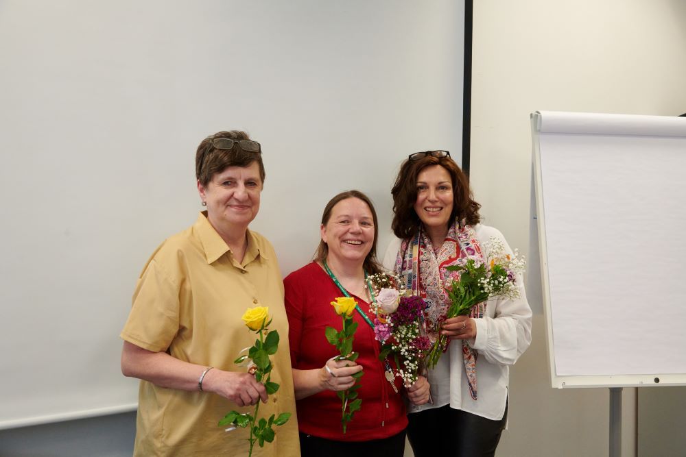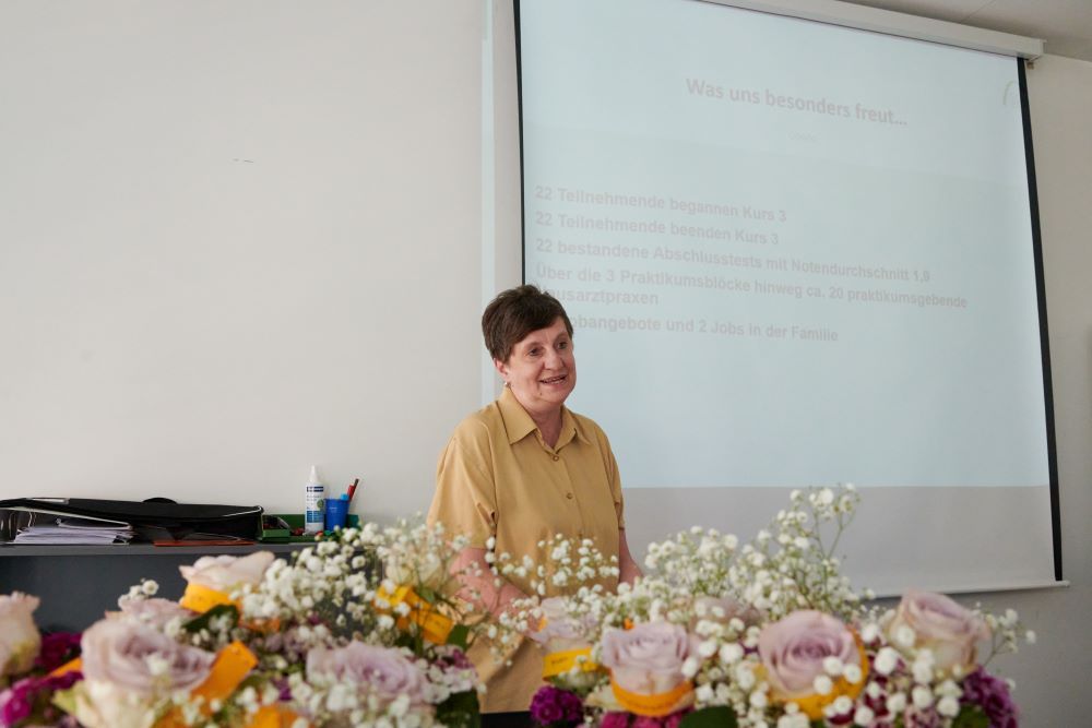 In ihrer Ansprache bei der Abschlussveranstaltung verwies Monika Geisberger auch auf die Möglichkeit, den Weg der Weiterbildung in den hausärztlichen Praxen weiter zu verfolgen. Mit dem Zertifikat sei die erste Hürde genommen. „Aber Sie müssen hier nicht stehen bleiben. Der nächste Schritt kann die MFA-Ausbildung sein, darauf aufbauend die Qualifizierung zur Versorgungsassistentin in der Hausarztpraxis bis hin zu einem Master-Studiengang Primary Care Management“, erklärte sie ihren Zuhörerinnen.