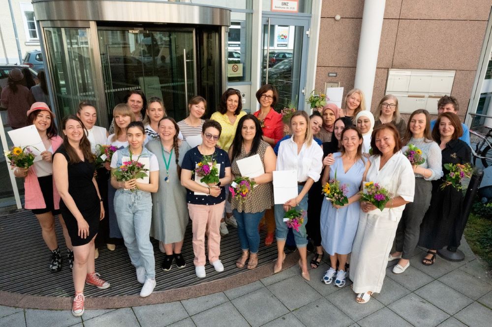 Unter den Teilnehmerinnen und Teilnehmern waren ein IT-Entwickler, eine ukrainische Ingenieurin, die bis zum russischen Einmarsch im Kernkraftwerk Saporischschja gearbeitet hat, und sogar eine Ärztin aus Kiew. Svetlana war ursprünglich als Notärztin tätig und hat dann viele Jahre für eine Krankenkasse in der Ukraine gearbeitet. 2022 floh Svetlana vor dem russischen Angriffskrieg nach München. „Die Zertifizierung war für mich der erste Schritt. Jetzt hoffe ich auf eine Anstellung in einer Hausarztpraxis. Außerdem will ich weiter mein Deutsch verbessern und vielleicht eine Ausbildung zur MFA machen“, erzählt die Ukrainerin.