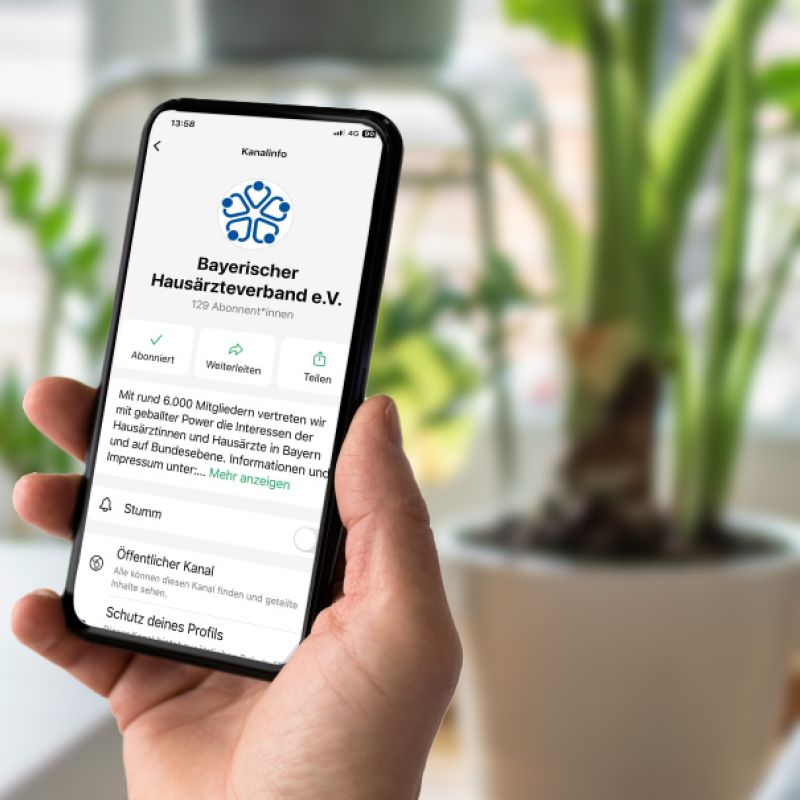 Mit einem eigenen WhatsApp-Kanal bietet Ihnen der Bayerische Hausärztinnen- und Hausärzteverband neben der Homepage und dem wöchentlichen Newsletter einen weiteren Informationskanal, um wichtige berufspolitische Themen schnell und unkompliziert weiterleiten zu können.