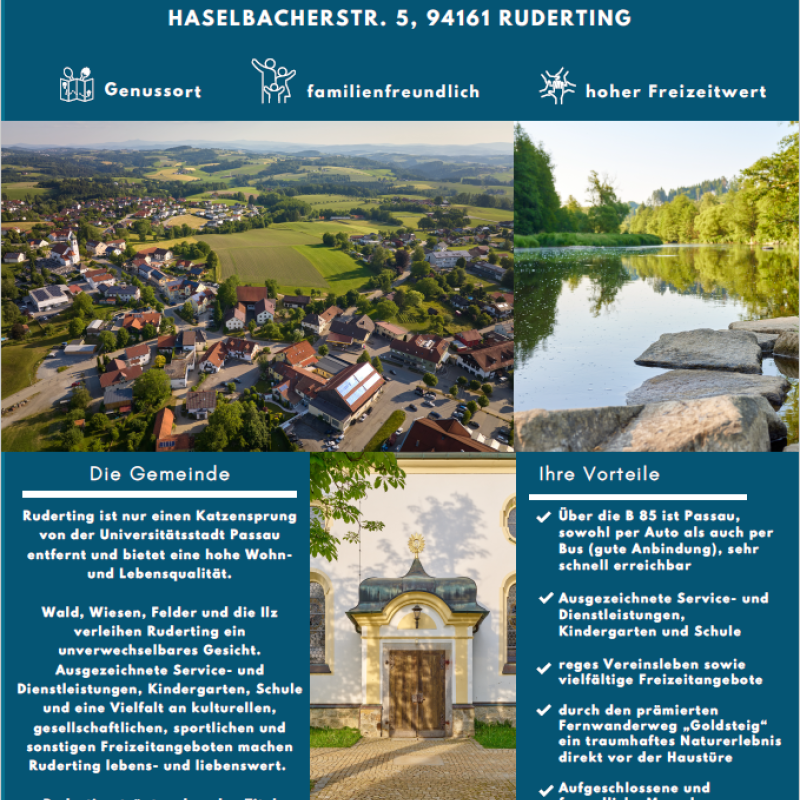 Vielfältige kulturelle, gesellschaftliche, sportliche und sonstige Freizeitangebote. Gastronomie mit gutem Essen, feiner Kulinarik und gemütlichem Ambiente, die Ruderting als einziger Gemeinde im Landkreis den Titel "kulinarischer Genussort" eingetragen hat. -