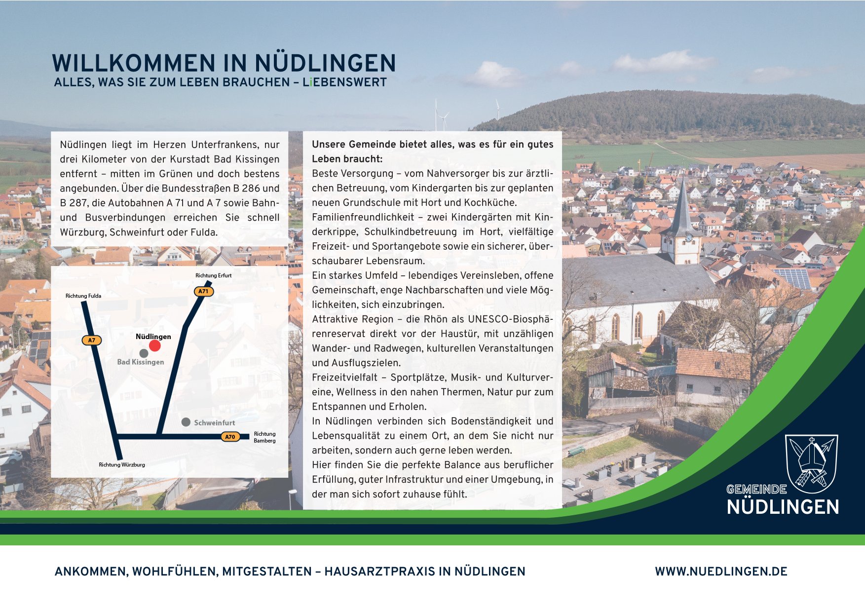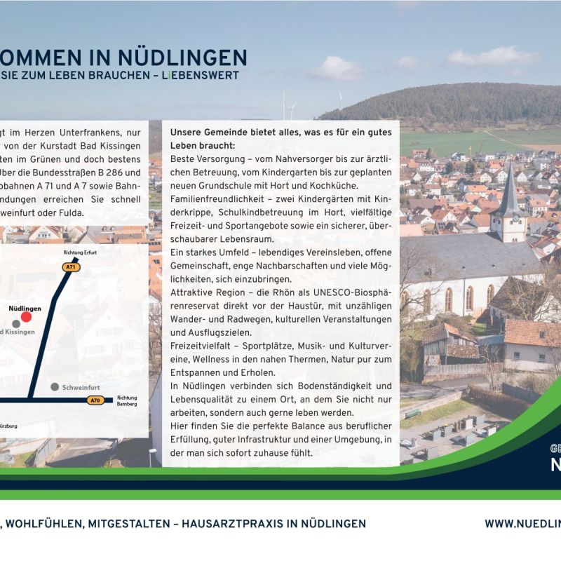 Engagierte und offene Dorfgemeinschaft, die neue Bürgerinnen und Bürger herzlich aufnimmt. Hohe Lebensqualität durch die Kombination aus Natur, Kultur und guter Infrastruktur. Melden Sie sich gerne für ein unverbindliches Gespräch beim Ersten Bürgermeister Harald Hofmann. Instagram: https://www.instagram.com/gemeinde_nuedlingen_offiziell/ -