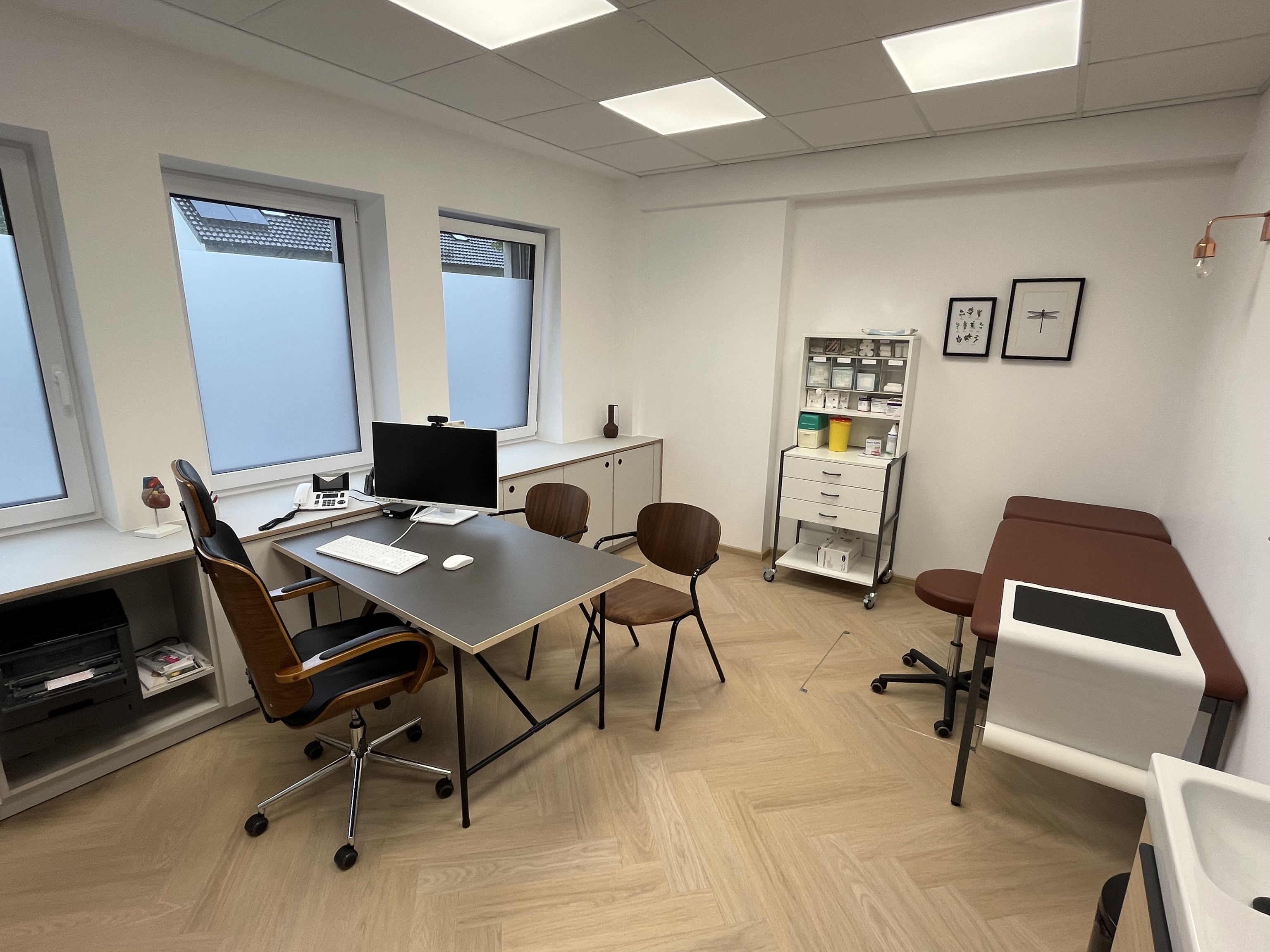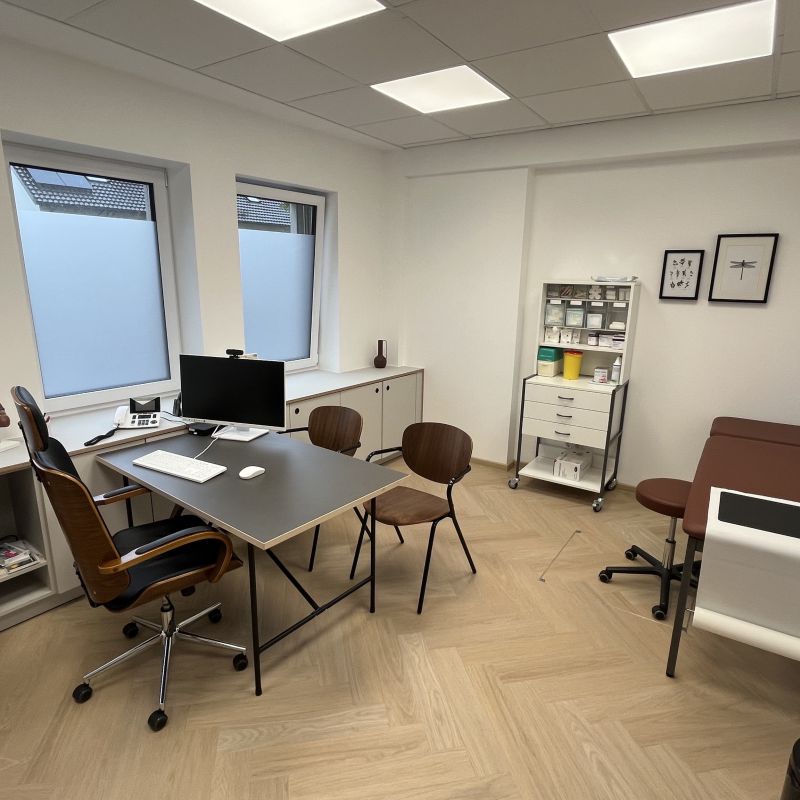 Die nagelneue Praxis ist ca. 300 qm groß. Sie umfasst neben drei Sprechzimmern einen eigenen Ultraschallraum sowie ein Funktionszimmer. Für die Mitarbeiter stehen eine eigene Terasse, eine Personaldusche, eine E-Ladestation sowie ein eigener Umkleideraum zur Verfügung. Zusätzlich zum Lohn werden ein Tankgutschein (50 Euro pro Monat), 5 Fortbildungstage und 500 Euro Fortbildungskosten angeboten. Wir sind eine akademische Lehrpraxis der Uni Wbg. Neben der allgemeinmedizinischen Versorgung bieten wir eine breite internistische Abklärung (inklusive Echokardiographie, Thoraxsonographie, Doppler Halsgefäße) an. Vorhanden sind zudem 3xLZ-RR, 1xLZ-EKG (Selbstauswertung), SAS-Screening, Ergometrie, ABI und eine Lungenfunktion, ein nagelneues Ultraschallgerät GE P8 sowie ein manueller Defi "Schiller Touch 7". Im Rahmen der Weiterbildungszeit können Notarztdienste mitgefahren werden. Unser Team ist jung und hochmotiviert, eine flache Hierarchie ist mir wichtig. Interesse geweckt? Eine Hospitation zum Kennlernen ist jederzeit möglich. Wir freuen uns auf dich.