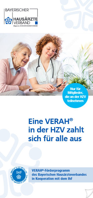Der Bayerische Hausärztinnen- und Hausärzteverband hat für seine Mitglieder, die an der HZV teilnehmen, ein VERAH-Förderprogramm aufgelegt. Wer als Mitglied im Bayerischen Hausärztinnen- und Hausärzteverband und HZV-Arzt eine MFA beim IhF für VERAH-Ausbildung anmeldet, erhält automatisch einen Zuschuss zu den Ausbildungskosten in Höhe von 379 Euro durch den Bayerischen Hausärzteverband. Sprechen Sie Ihre Chefin / Ihren Chef darauf an!