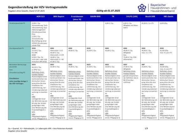 Gegenüberstellung der HZV-Vertragsmodelle