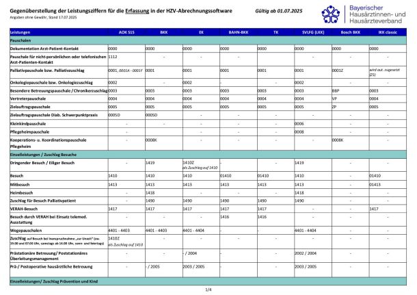 Für die korrekte und vollständige Erfassung Ihrer erbrachten HZV-Leistungen finden Sie eine Auflistung aller gültigen HZV-Erfassungsziffern. Bitte beachten Sie, wenn keine HZV-Erfassungsziffer vorgegeben ist: Nicht bei allen HZV-Leistungen müssen Sie eine Erfassung in Ihrer HZV-Abrechnung vornehmen. Sie erkennen dies daran, dass keine HZV-Erfassungsziffer vergeben ist.