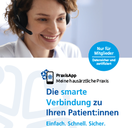 Der Bayerische Hausärzteverband hat die PraxisApp gemeinsam mit dem Anbieter Telemedizinischer Dienstleistungen Monks Ärzte-im-Netz entwickelt – einem anerkannten Servicepartner für Berufsverbände im Gesundheitswesen. Ab sofort steht sie Mitgliedern des Bayerischen Hausärzteverbandes zur Verfügung. Mehr zur App „Meine hausärztliche Praxis“ finden Sie hier in einem Beitrag, den FAQ zur PraxisAPP "Meine hausärztliche Praxis" und auf der Homepage zum Angebot: