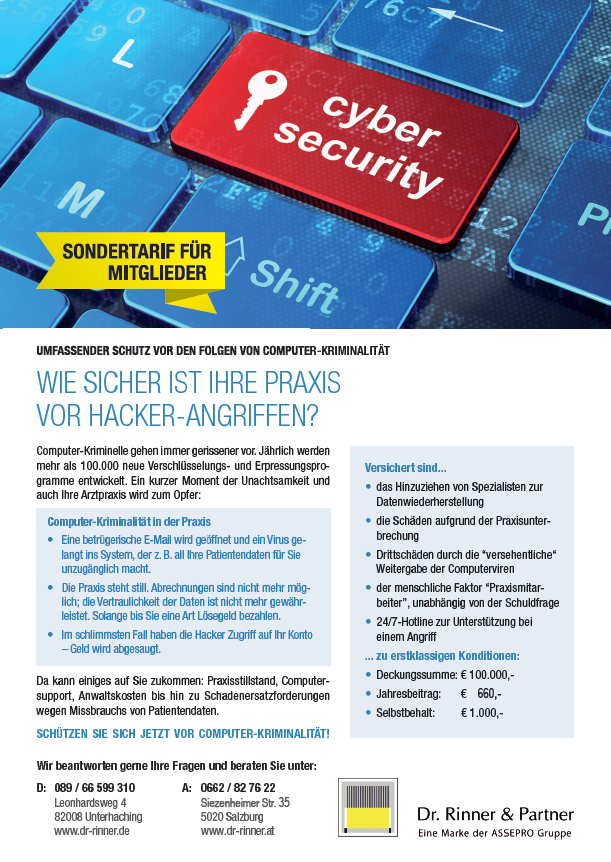 Die ASSEPRO Versicherungsmakler GmbH/Dr. Rinner & Partner bietet Mitgliedern des Bayerisvchen Hausärzteverbandes diese Versicherungen zum Sondertarif.
