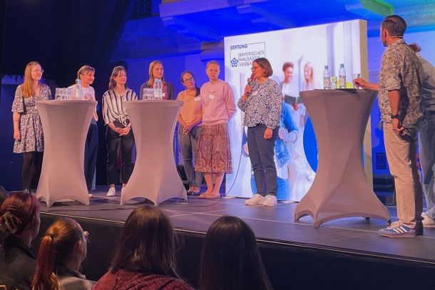 Zum Thema Beruf und Familie kamen zwei Ärztinnen in Weiterbildung auf die Bühne, für deren Fachrichtungswahl die Familienfreundlichkeit der Allgemeinmedizin eine entscheidende Rolle gespielt hat: Pia Rutrecht, Mutter von drei Kindern, und Laura Wopperer, die ein Kind hat.