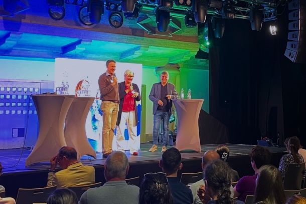 „Es war ein großes Vergnügen, die Bühne gefüllt zu haben mit Studierenden, Ärztinnen und Ärzten in Weiterbildung, Niedergelassenen und unseren Beruf so nah hier an die Menschen zu bringen, die sich hoffentlich begeistern für die Hausarztmedizin“, zieht Moderatorin Dr. Beate Reinhardt ein positives Fazit. Auch Co-Moderator Benjamin Haugg wertet den Abend als Erfolg: „Es wurden viele wichtige Fragen aus dem Plenum gestellt, hier waren ganz viele enthusiastische Studierende, die den Weg in die Allgemeinmedizin gehen möchten, und schon auf dem Weg sind, gute Hausärztinnen und Hausärzte zu werden. Ich kann den Abend nur positiv bewerten und freu mich schon auf den nächsten 'Start-up Allgemeinmedizin' in Regensburg."