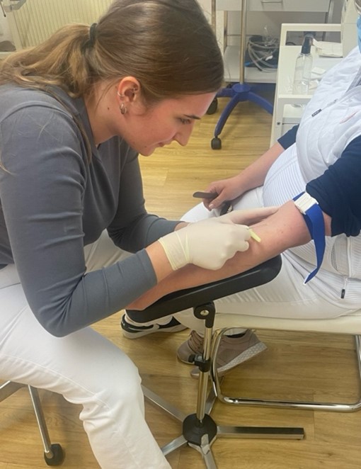 Während meiner Famulatur hatte ich die Gelegenheit, zahlreiche praktische Tätigkeiten zu übernehmen und mein Wissen in der medizinischen Praxis anzuwenden. Ich durfte die MFAs bei Labortätigkeiten wie dem Abnehmen von Blut oder das Auswerten von Urinteststreifen unterstützen, aber auch das Anlegen von EKGs oder die Durchführung von Lungenfunktionstests zählten zu meinen Aufgaben. Die Ärzte nahmen sich äußerst viel Zeit, mit mir echte und theoretische Patientenfälle durchzusprechen, und haben mir wichtige körperliche Untersuchungen demonstriert. Daraufhin durfte ich mit einigen Patienten und Patientinnen eigenständig Anamnesegespräche führen und sie gegebenenfalls körperlich untersuchen, wobei ich mein Wissen aus der Theorie in die Praxis umsetzen konnte. Im Anschluss präsentierte ich den Ärzten den Patienten oder die Patientin und gemeinsam wurde dann das weitere Vorgehen besprochen. Besonders dieses Anvertrauen von Aufgaben und die offene und verständnisvolle Art, die mir entgegengebracht wurde, habe ich in der Praxis sehr geschätzt. Mir werden aber auch die Hausbesuche, bei denen ich Dr. Hartung begleiten durfte, immer im Gedächtnis bleiben. Das Gefühl von Dankbarkeit, das Dr. Hartungs Patienten und Patientinnen ausstrahlen, sobald er durch die Tür tritt, ließ mich verstehen, wieso sein Beruf ihm so viel Freude bereitet.